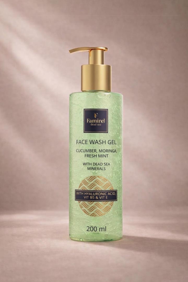 Gel Detergente Viso Cetriolo, Moringa e Menta con Minerali del Mar Morto, 200 ml