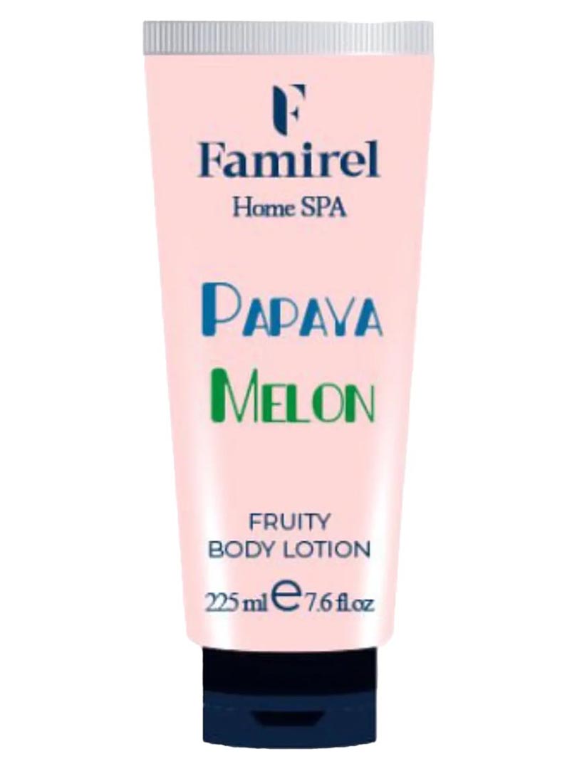 חלב רחצה מפנק לגוף בניחוח פפאיה ומלון לניקוי עדין ולתחושת רעננות FAMIREL