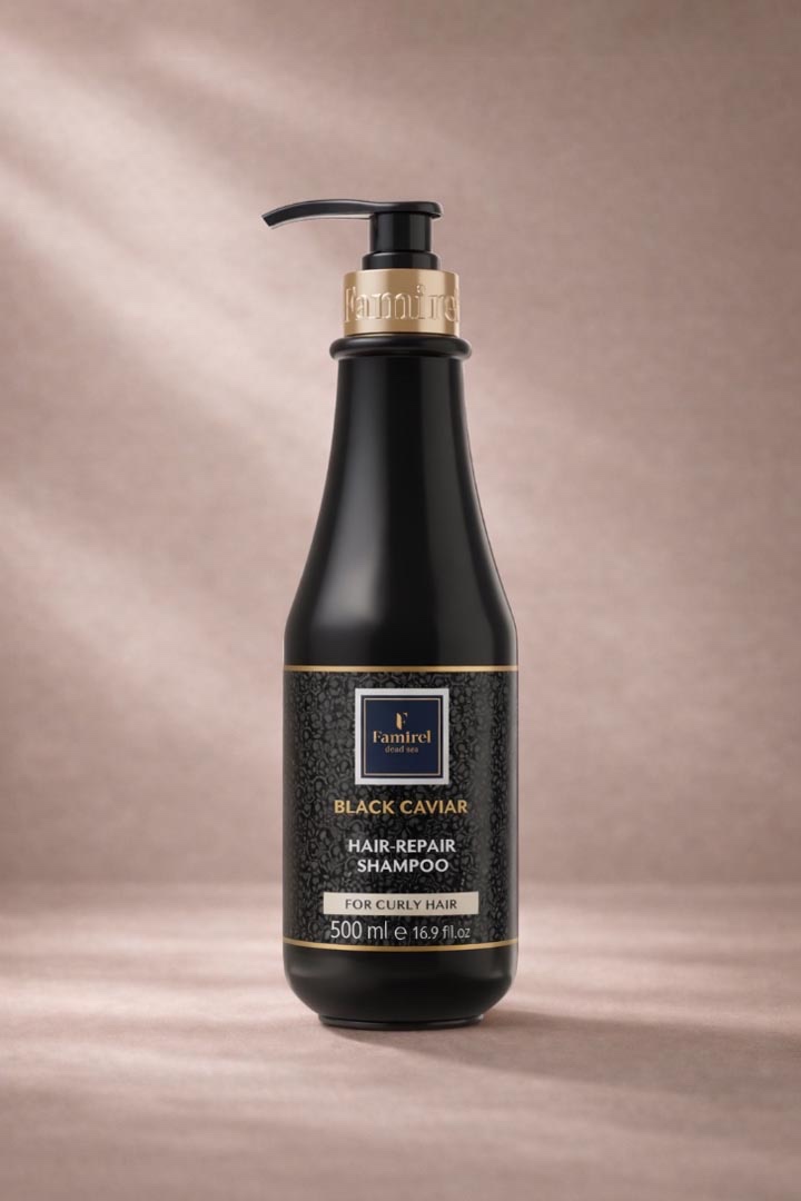 שמפו לשיער מתולתל עם תמצית קוויאר שחור להזנה ושיקום השיער FAMIREL