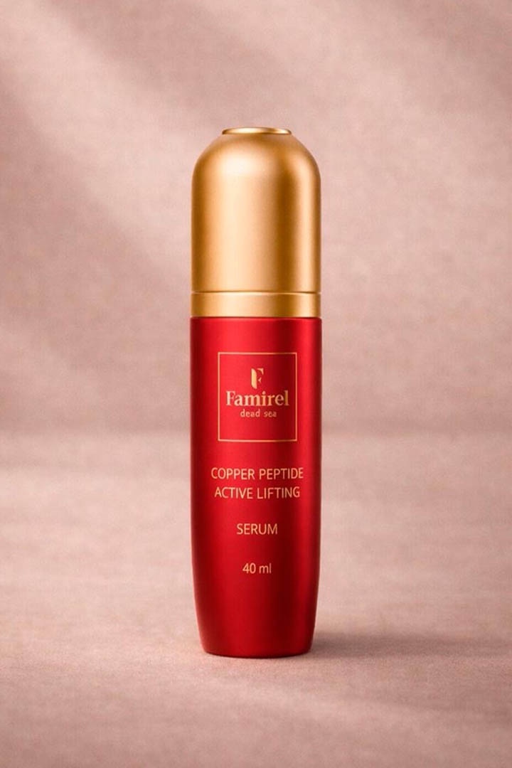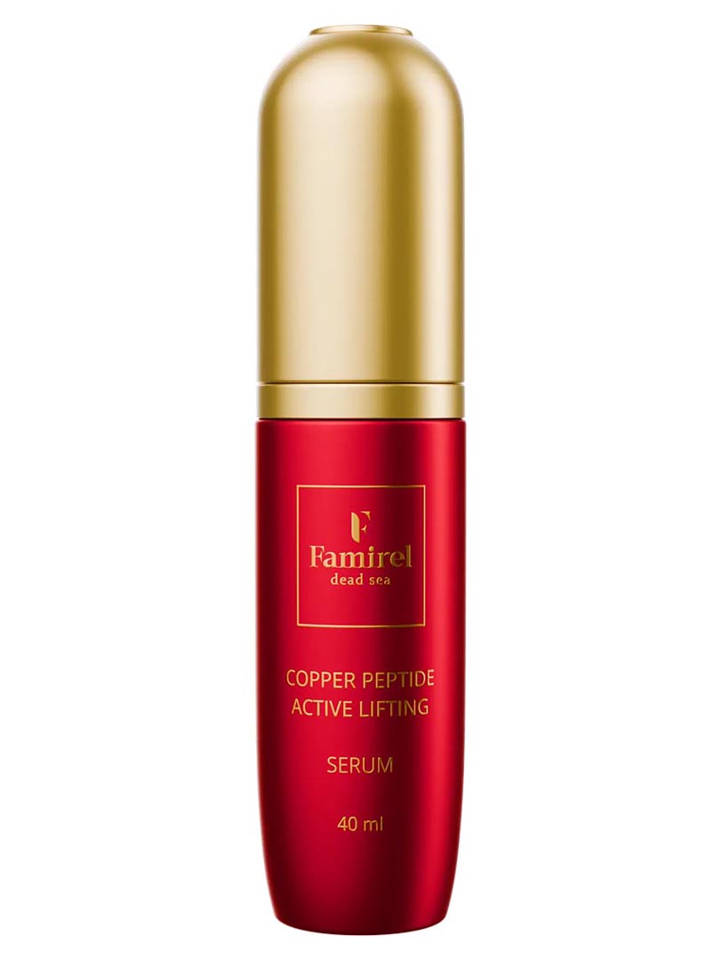 טכנולוגיית COPPER PEPTIDE Active Lifting של Famirel היא טכנולוגיית הרמה חדשנית, הנלחמת ביעילות בסימנים הראשונים של ההזדקנות.פפטידי נחושת פועלים כנוגד חמצון רב עוצמה ומעודדים את הייצור של קולגן ואלסטין. הפעולה מסייעת בהפחתת הופעתם של קווים דקים וקמטים ובשיקום האלסטיות והברק של העור.