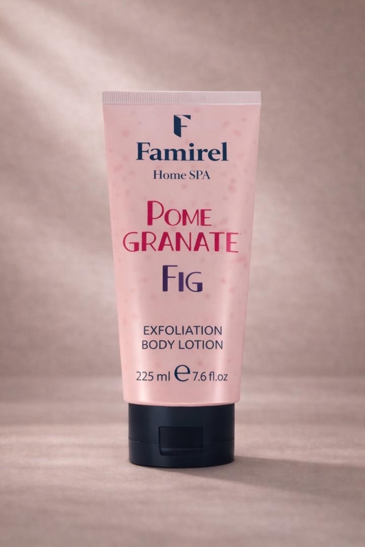 תחליב פילינג עדין לגוף בניחוח רימון ותאנה לניקוי ולריכוך העור FAMIREL